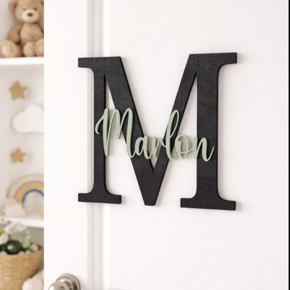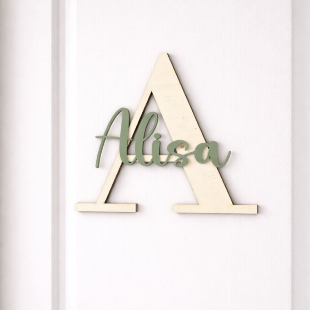 Die Kombination aus dem Anfangsbuchstaben aus Holz und einem filigranen Schriftzug aus Acryl macht dieses schöne Namensschild zu einem echten Hingucker – ideal fürs Kinderzimmer (als Türschild oder auch als Wanddeko) oder als liebevolles Geschenk.